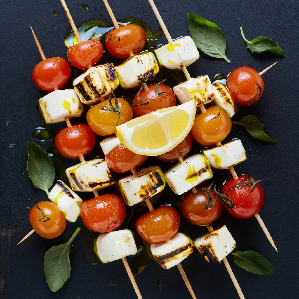 3. Brochetas de Tomate y Mozzarella (70 Calorías)