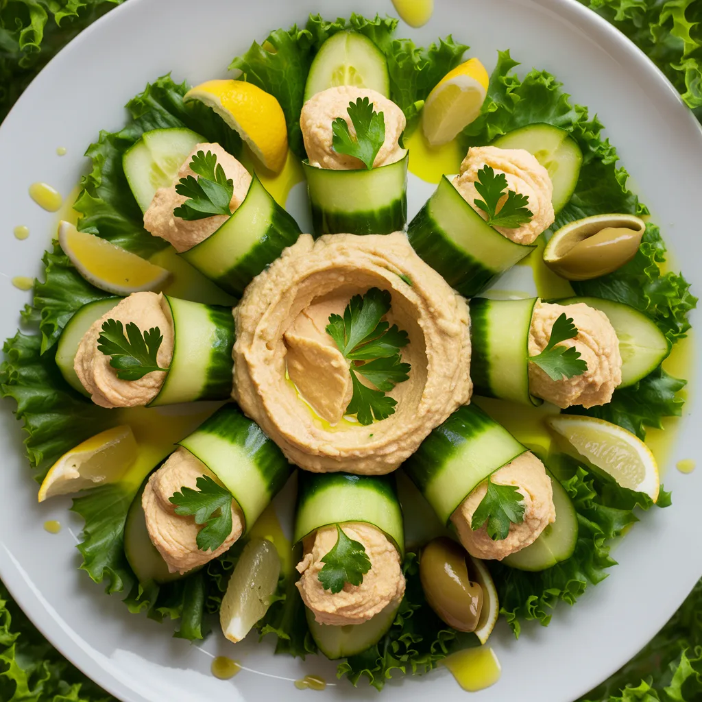 Descripción: Estos rollitos de pepino rellenos de hummus son un aperitivo fresco y saludable, perfecto para cualquier ocasión.