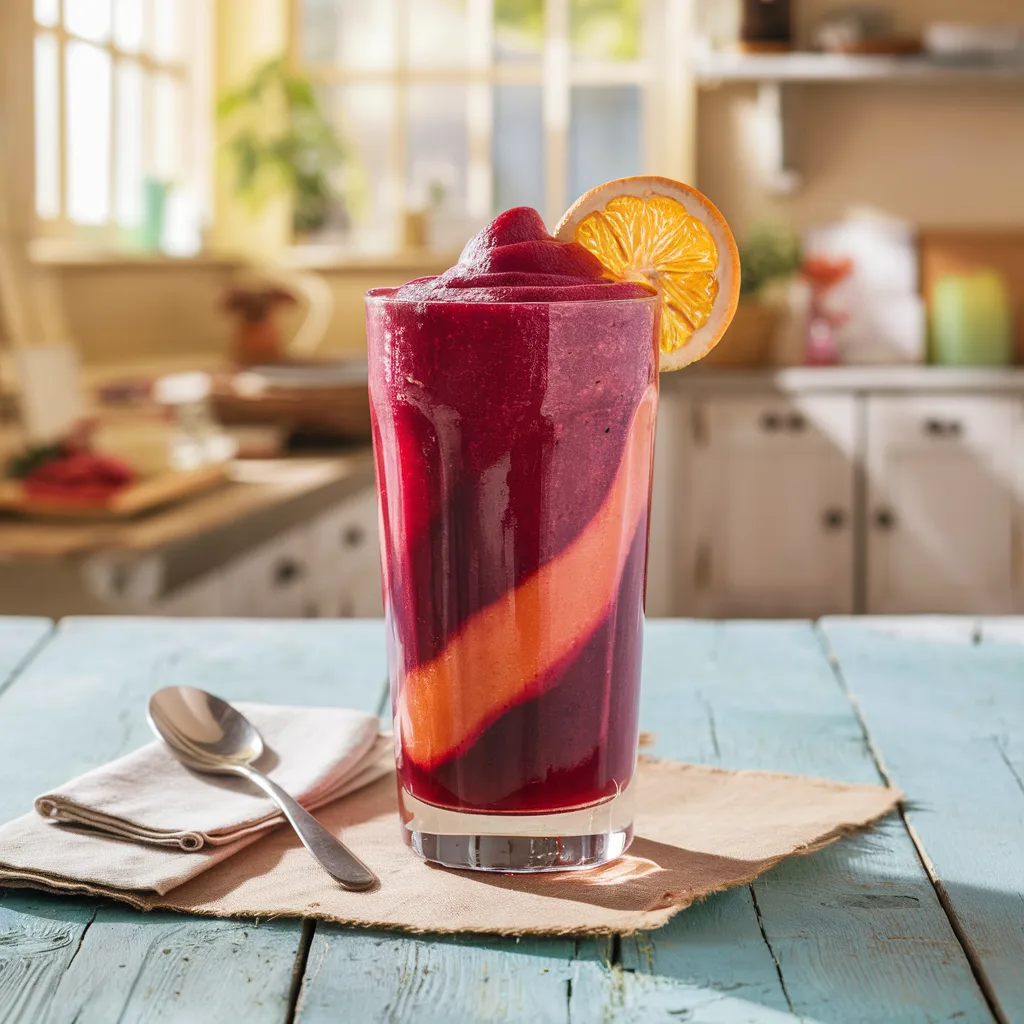 Por qué es bueno: La remolacha es rica en antioxidantes y ayuda a mejorar la circulación sanguínea. La naranja aporta vitamina C y un sabor dulce y ácido.