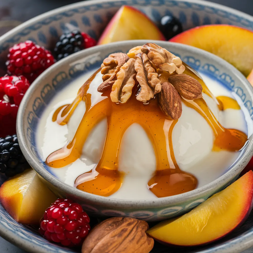 3. Yogur Griego con Miel y Nueces (220 Calorías)