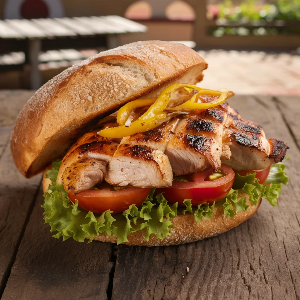 Descripción: Un bocadillo sencillo y delicioso con pollo a la parrilla y verduras frescas.