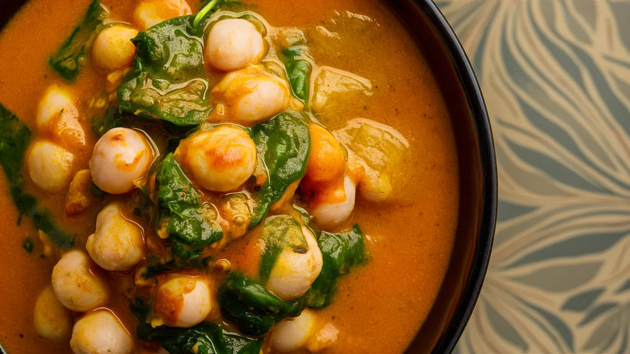 4. Curry de Garbanzos y Espinacas (300 Calorías)