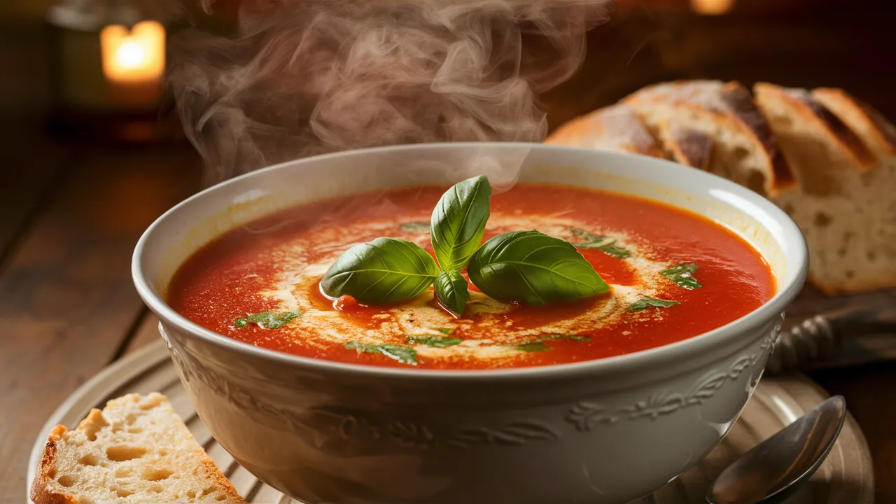 3. Sopa de Tomate y Albahaca (150 Calorías)