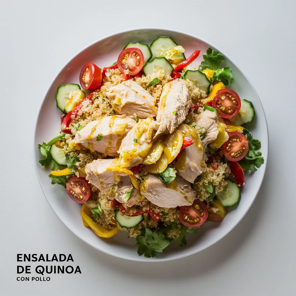 Por qué es bueno: La quinoa es una excelente fuente de proteínas y fibra, mientras que el pollo aporta proteínas magras. Las verduras añaden vitaminas y minerales esenciales.