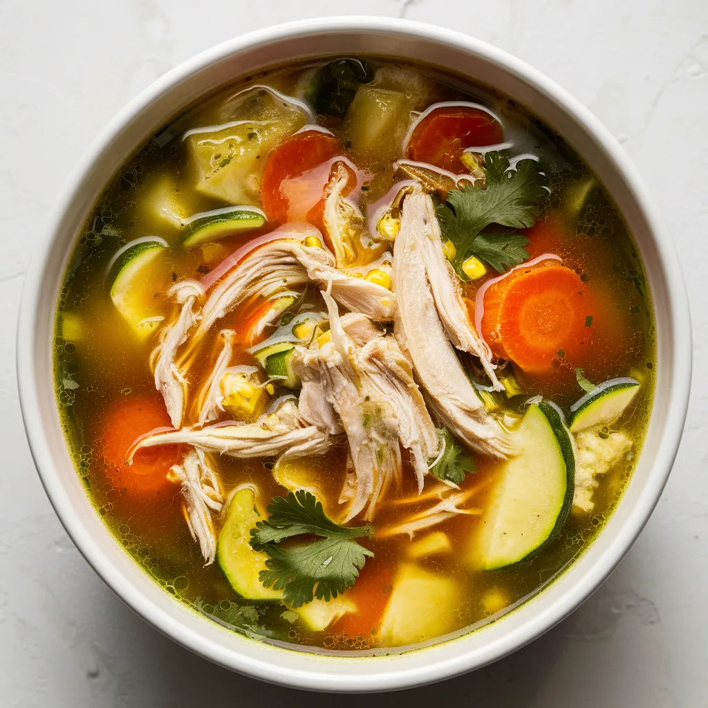 6. Sopa de Verduras y Pollo (180 Calorías)