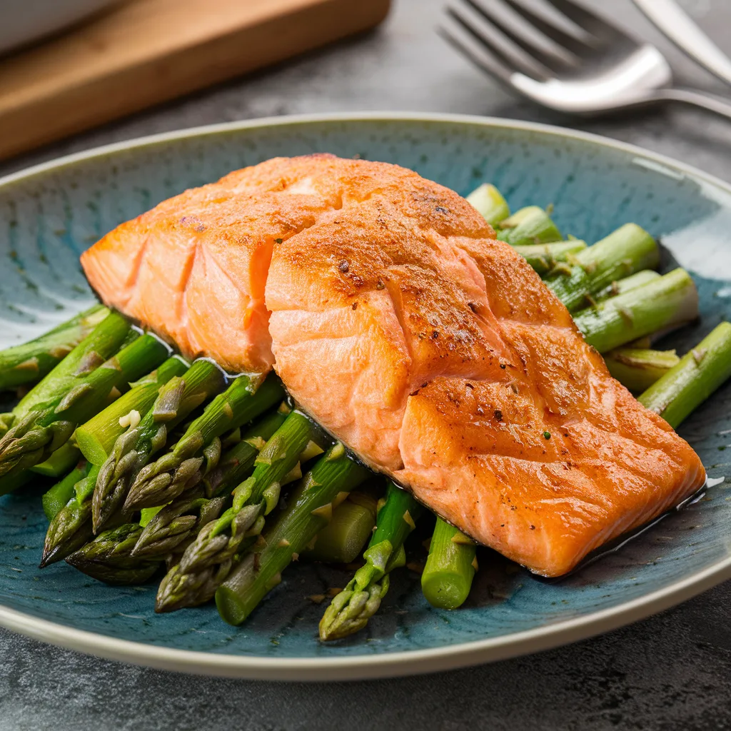 Por qué es bueno: El salmón es una excelente fuente de ácidos grasos omega-3, mientras que los espárragos son ricos en fibra y vitaminas.